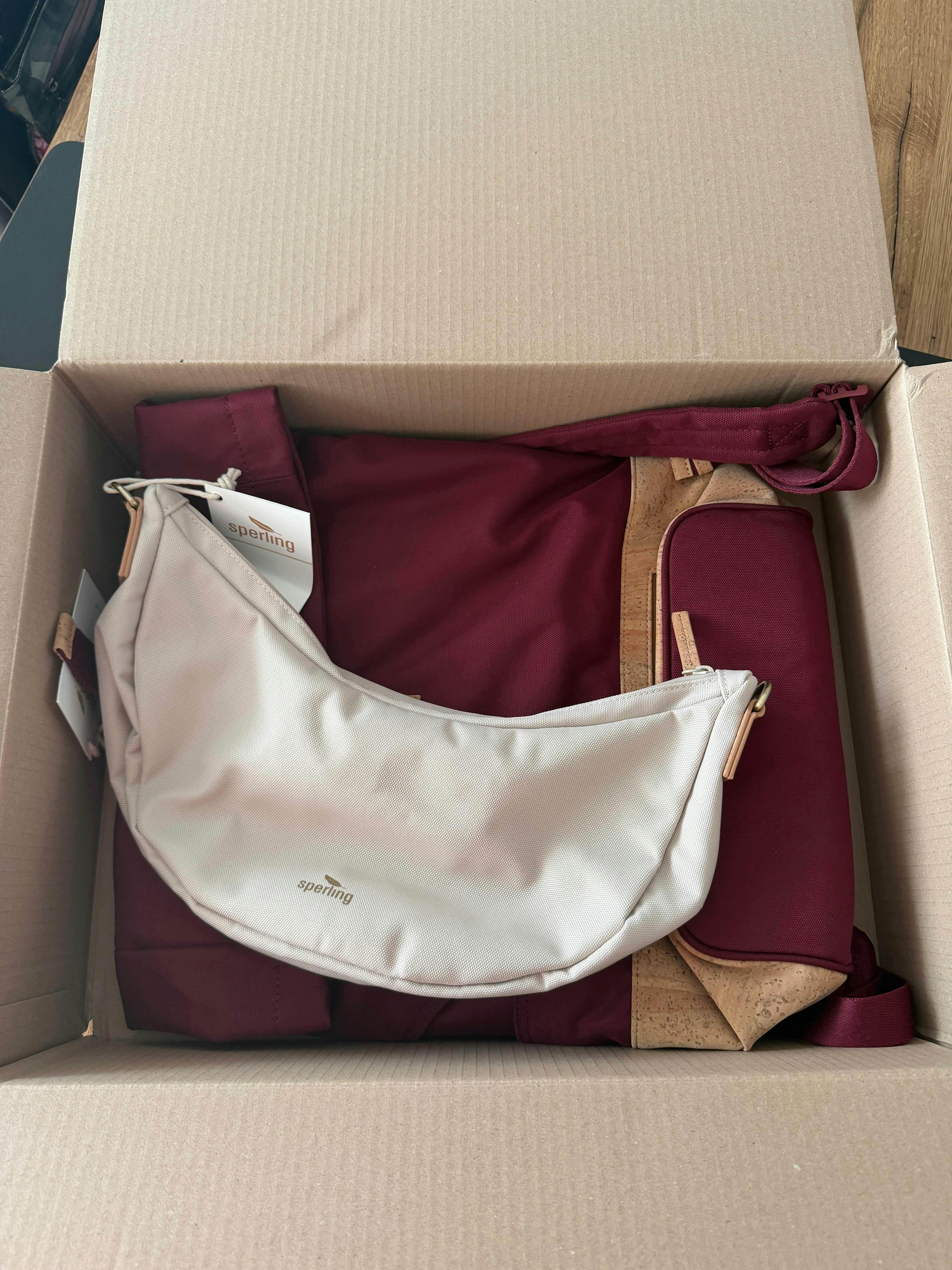 Der kleine Sperling ist wohlbehalten und sehr schnell bei mir angekommen und ich verspreche mich gut um ihn zu kümmern, ihn zu hegen und zu pflegen und ihm die Welt zu zeigen. Und natürlich hoffe ich dass wir ein langes glückliches Leben zusammen haben. Er fühlt sich klasse an und ich bin ganz überrascht wie weich der Kork ist. Ich mag auch die Flasche denn jetzt muss ich auf der Arbeit kein warmes Wasser mehr trinken. Es ist alles drin was auch in meinem vorigen Rucksack drin war fühlt sich allerdings leichter an. Und das umswitchen auf Handtasche es wirklich Sekundensache. Schön dass es euch gibt. Und ich habe euch natürlich auch gleich weiterempfohlen an meinen Sohn und seine Frau die beide vegan leben.